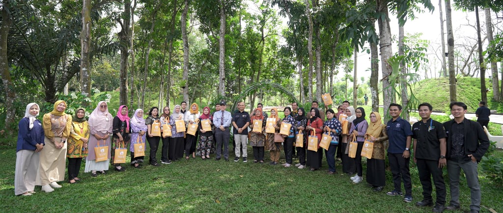 [FOTO BERSAMA]: Para Guru yang tergabung dalam MGBK dan MGKK Kota Semarang saat Foto Bersama usai Melakukan Kunjungan ke SCCR Indonesia, Kampus APU, dan Karenina Agung Resort pada Kamis (08/01/2026).