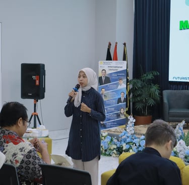 Wakil Rektor II Kampus APU, Waheni Rizki Aprilia, S.Si., Ph.D. saat Menjelaskan kepada Siswa-Siswi SMAN 3 Semarang Mengenai Visi Misi, Roadmap, serta Program Studi Kampus APU.