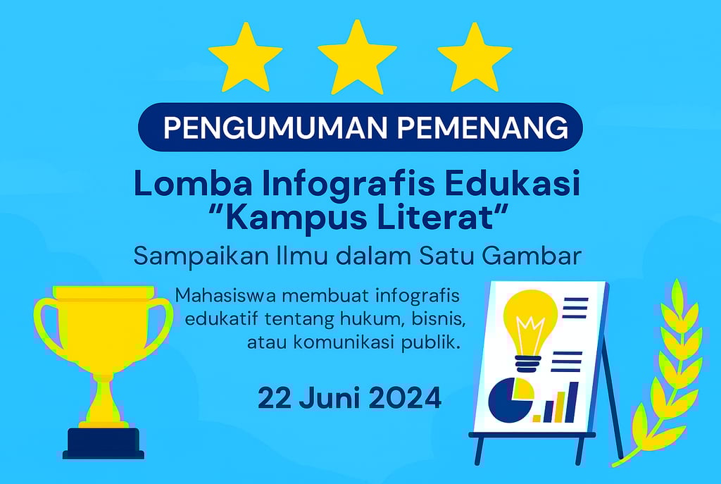 Kompetisi ini mempertemukan mahasiswa dari program studi Manajemen, Hukum, dan Ilmu Komunikasi dalam tantangan menyusun infografis tentang isu hukum, bisnis, dan komunikasi publik.