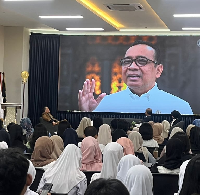 Menko PMK RI, Prof. Dr. Pratikno, M.Soc.Sc. saat Memberikan Materi kepada Peserta Program Pre University Kampus APU melalui Daring pada Sabtu (24/01/2026).