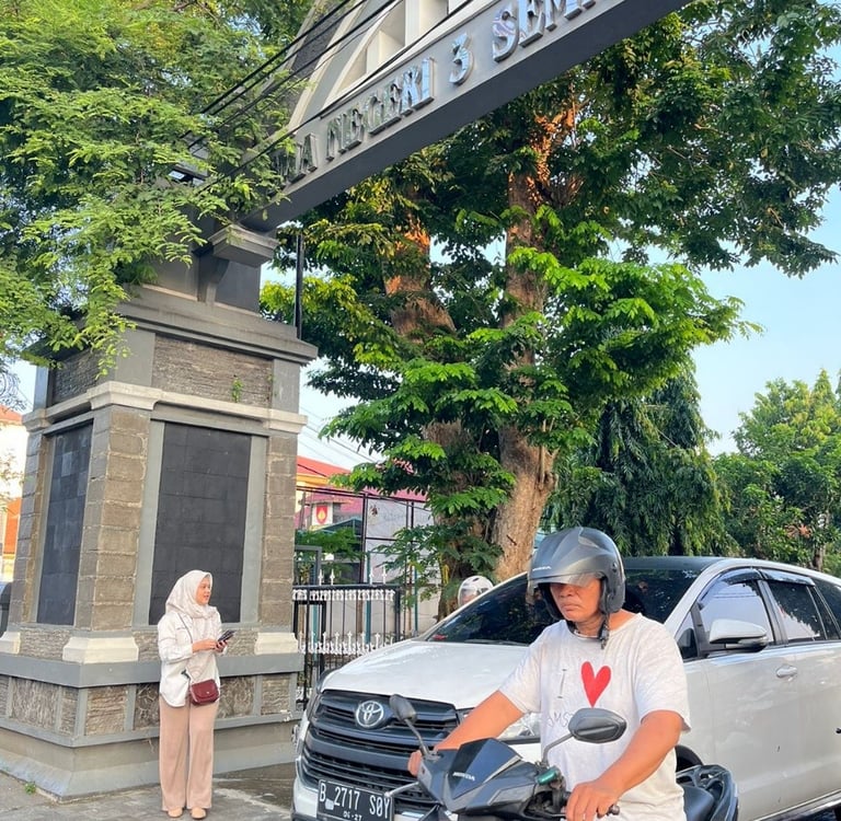 [AKSI]: Tim PMB IKMB sedang melakukan sosialisasi Penerimaan Mahasiswa Baru (PMB) kepada orang tua yang mengantarkan anaknya pada hari pertama sekolah di SMA Negeri 3 Semarang. Senin (14/07/2025).(ISTIMEWA)