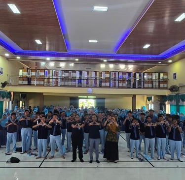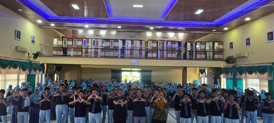 Siswa-siswi MAN 2 Kudus saat Berfoto Bersama dengan Jajaran Kampus Agung Putra University usai Mengikuti Acara Sosialisasi Kampus di MAN 2 Kudus pada Rabu (17/12/2025).